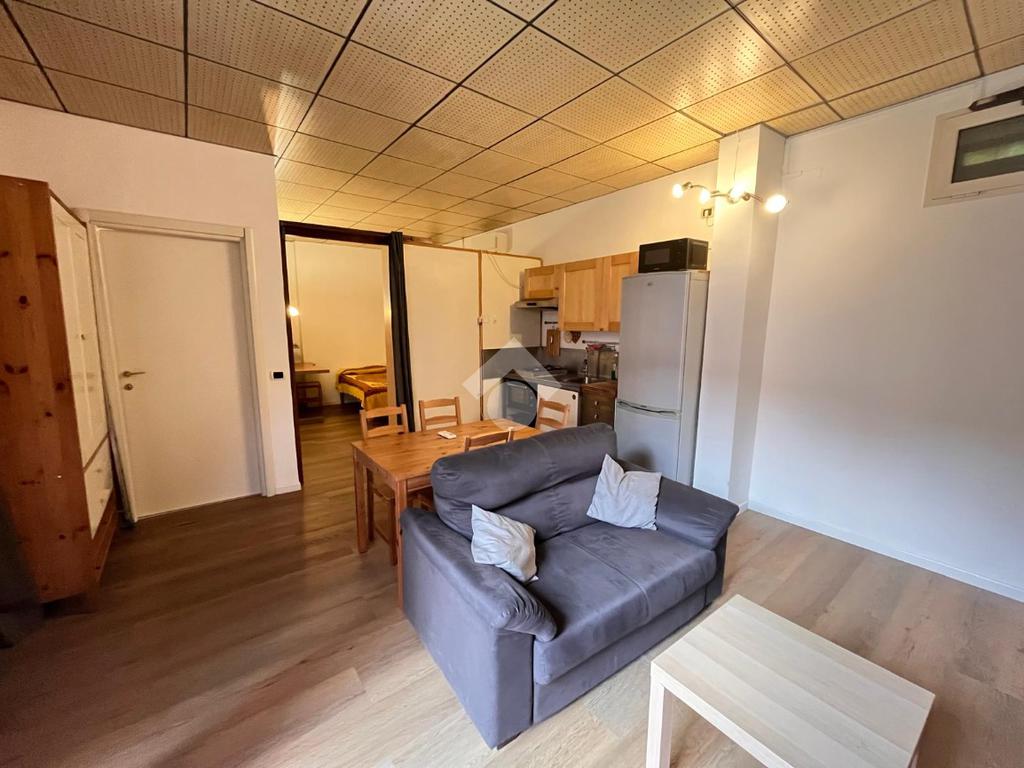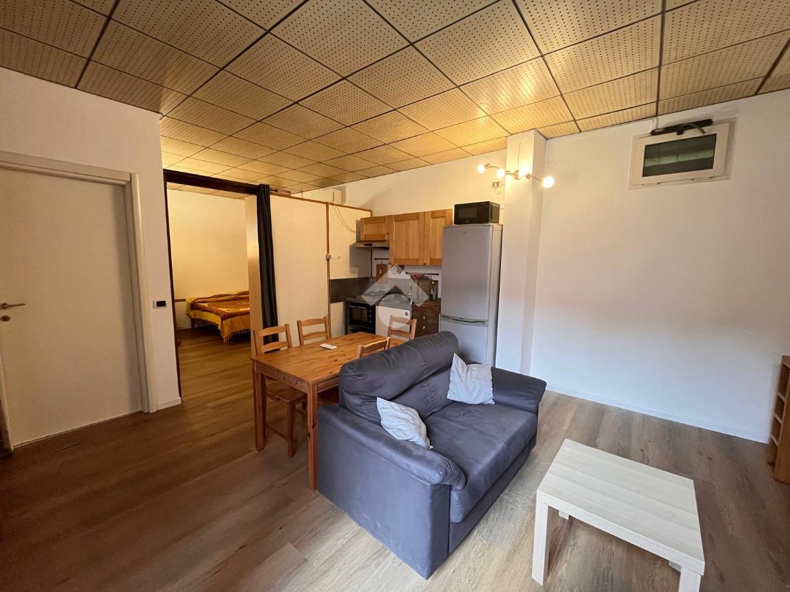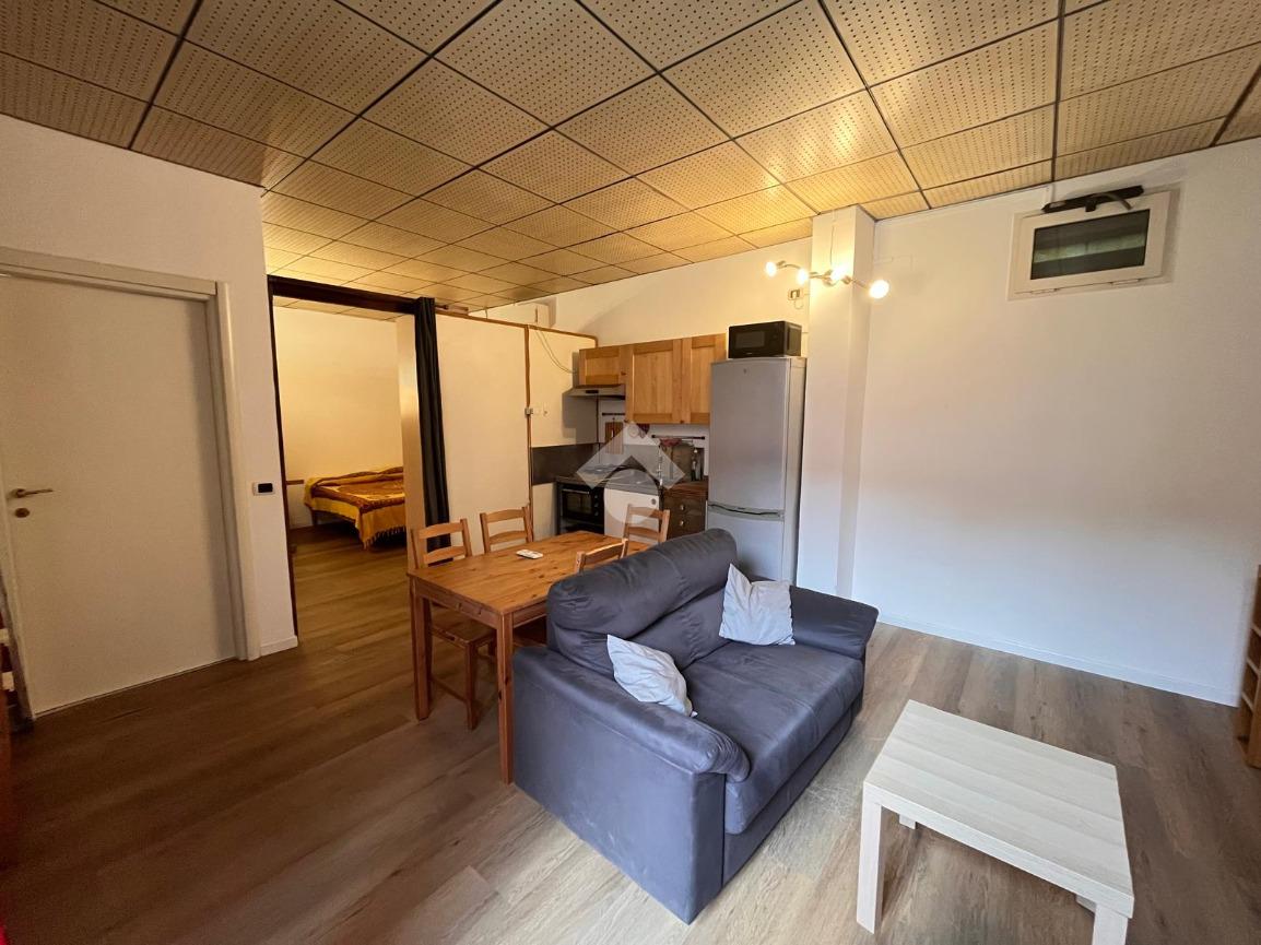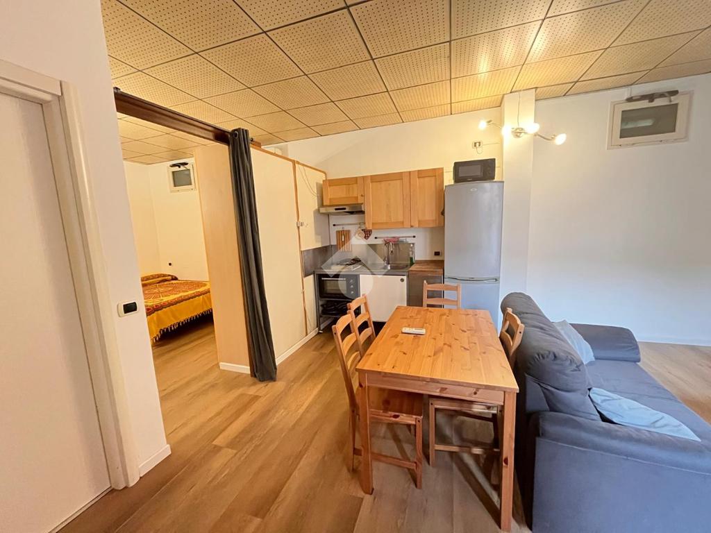 L'appartamento è composto da ingresso su soggiorno con angolo cottura, camera da letto, bagno con vasca. L'appartamento, in buono stato interno, viene locato completamente arredato.