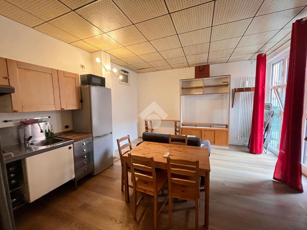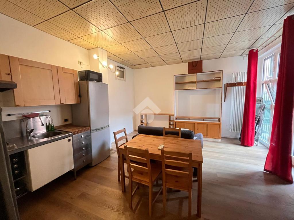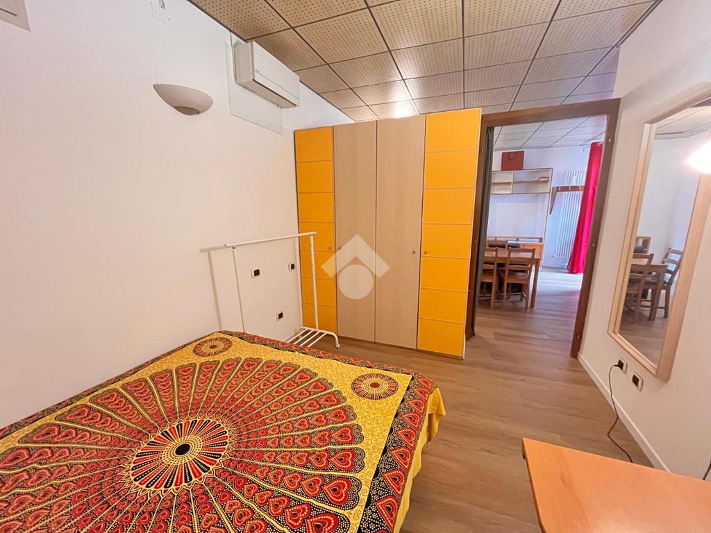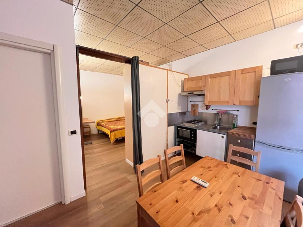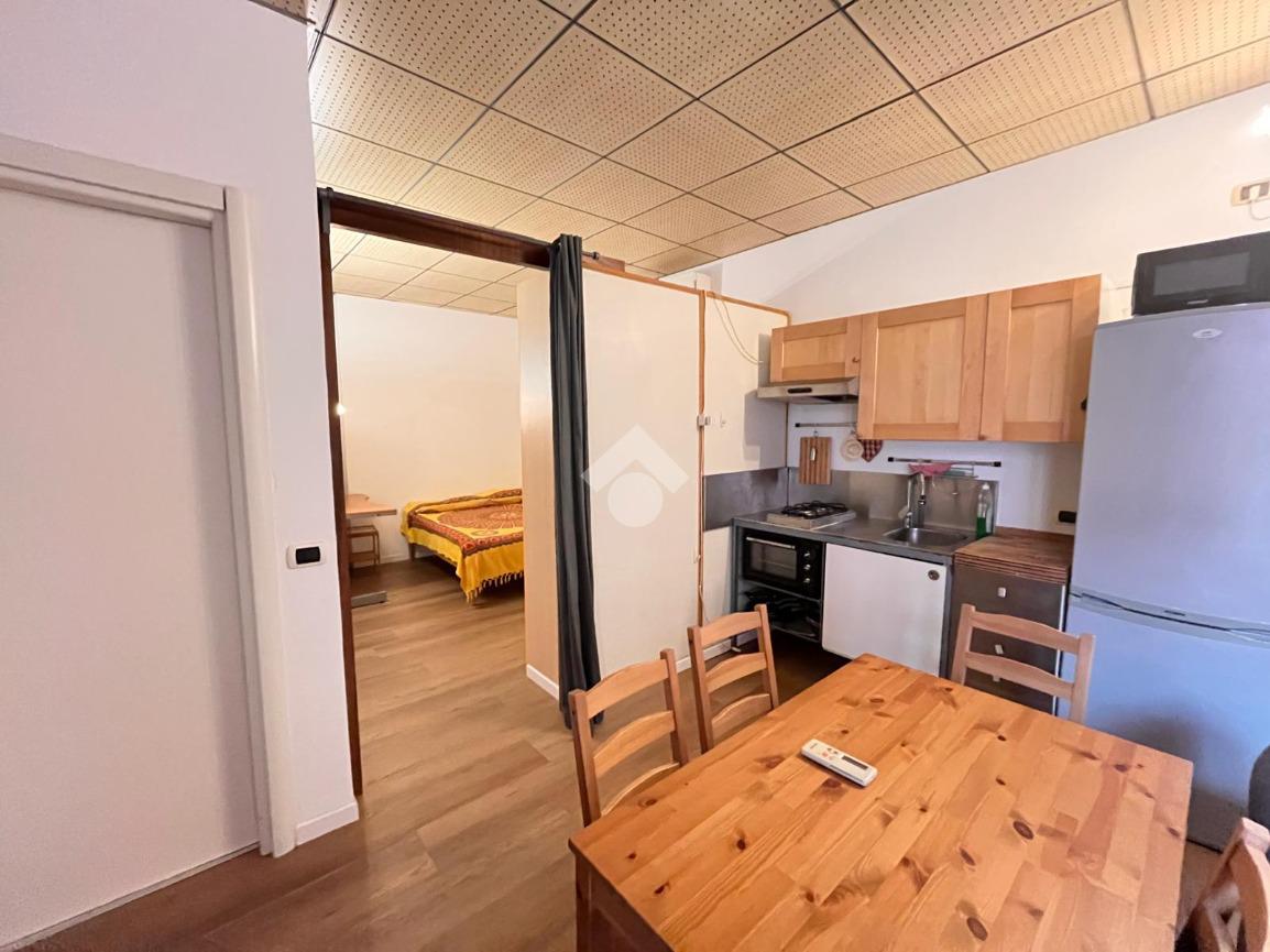 L'appartamento è composto da ingresso su soggiorno con angolo cottura, camera da letto, bagno con vasca. L'appartamento, in buono stato interno, viene locato completamente arredato.
