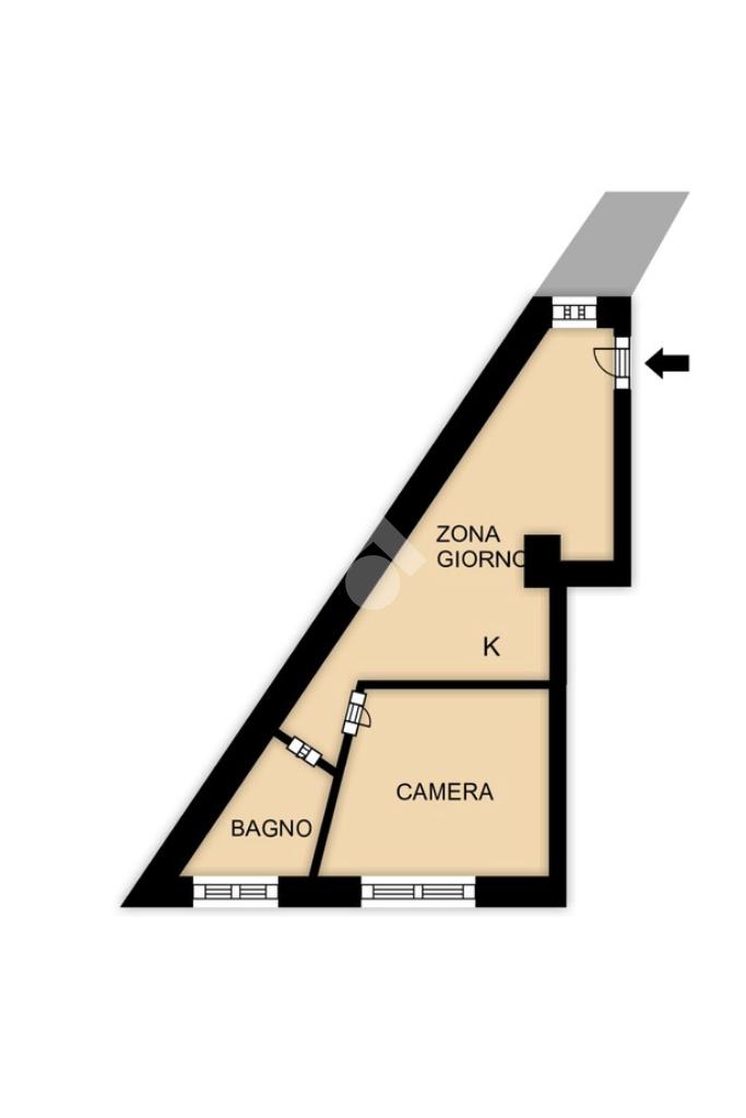 L'immobile è composto da ingresso su zona giorno con cucina a vista con ampia porta finestra che da accesso a piccolo terrazzino ad uso esclusivo sul cortile interno, camera matrimoniale e bagno finestrato con doccia.