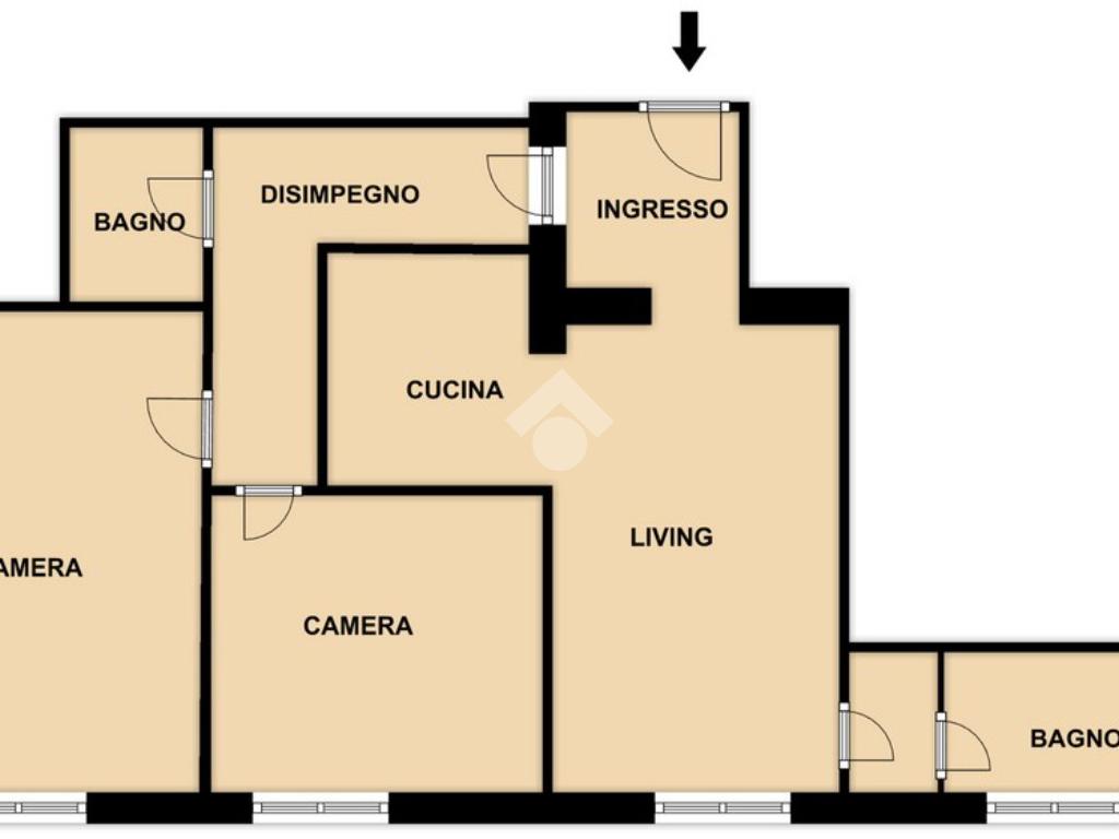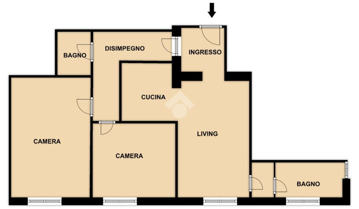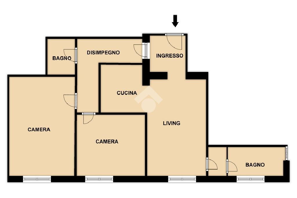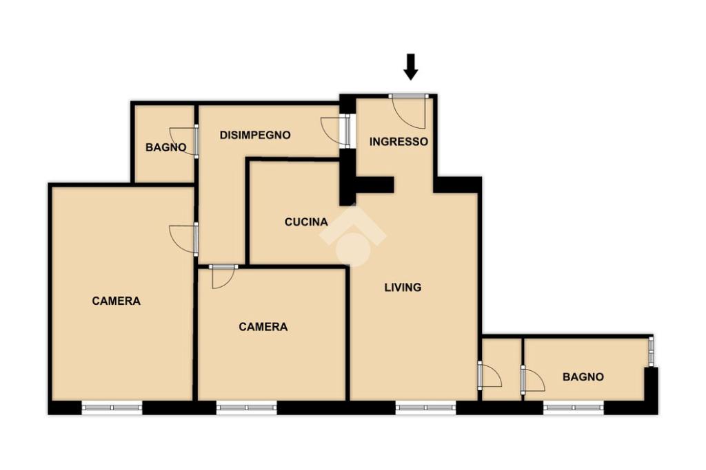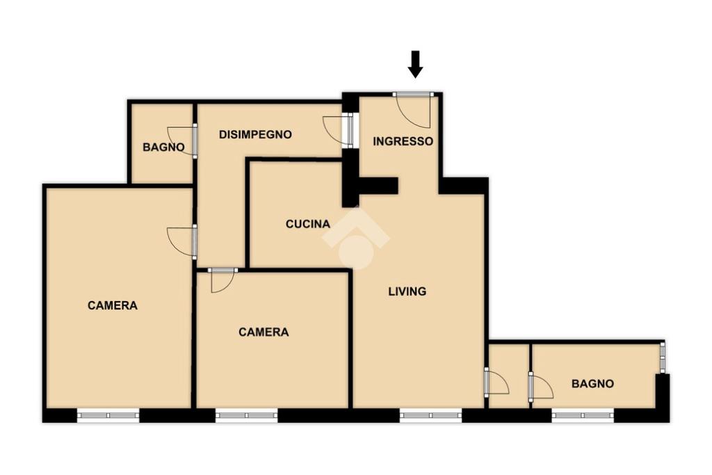 L'appartamento è caratterizzato da ingresso su disimpegno, zona giorno con cucina separata, due camere da letto, di cui una matrimoniale e doppi servizi.