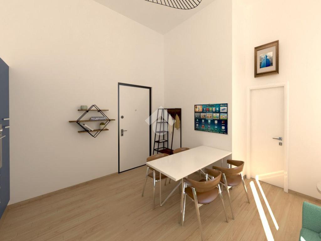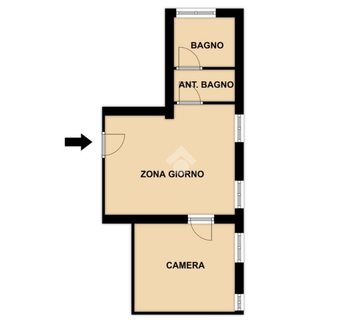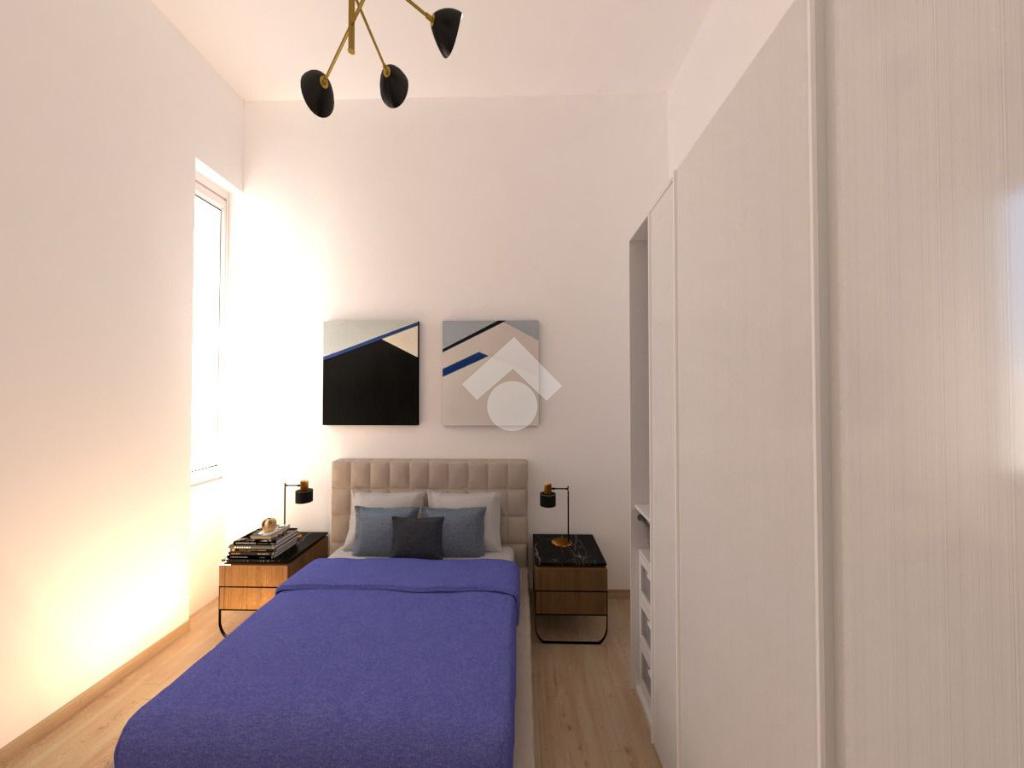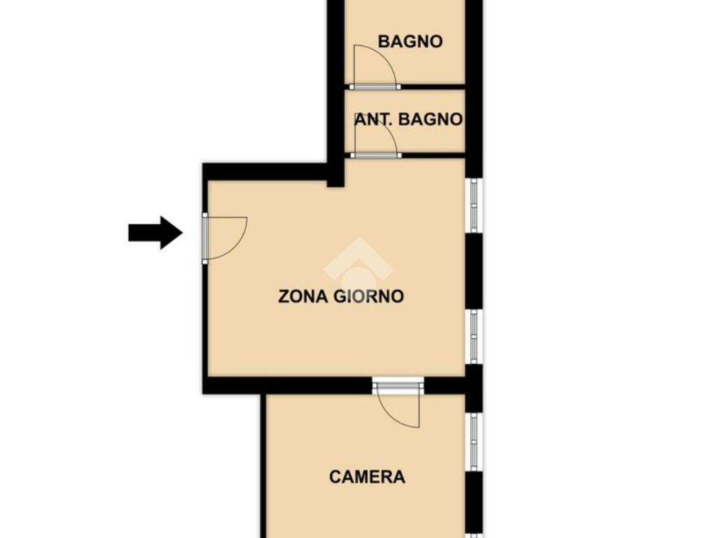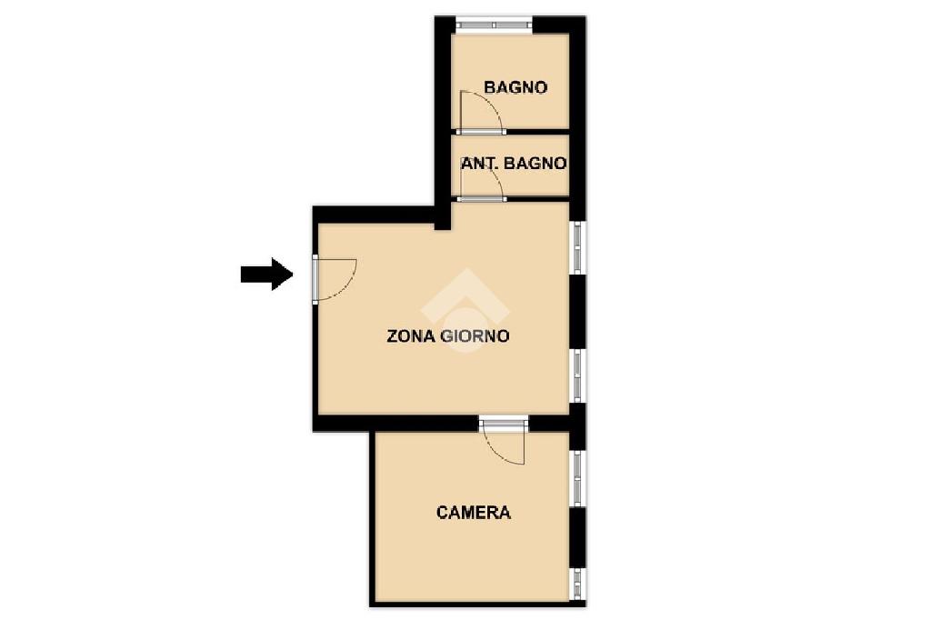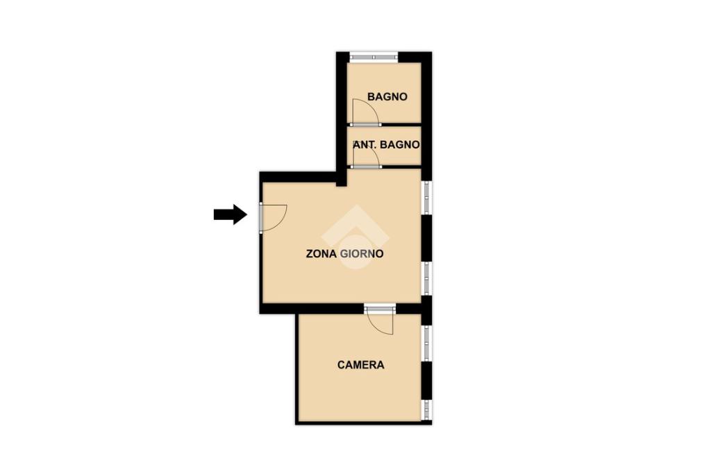 L'appartamento è caratterizzato da ingresso su zona giorno con cucina a vista, camera da letto matrimoniale e bagno finestrato con box doccia.