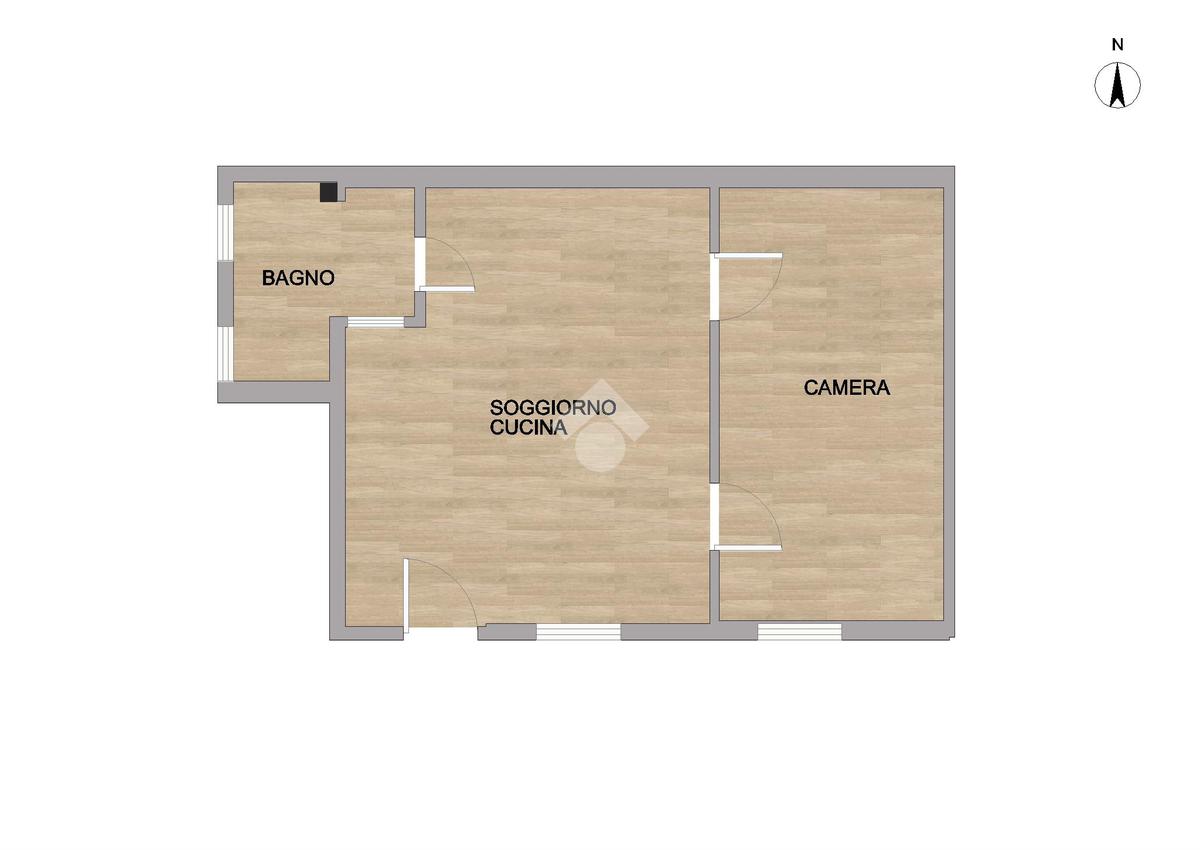 L’ingresso si apre su una confortevole zona giorno con cucina a vista, seguita da una spaziosa camera matrimoniale e da un bagno finestrato completo di box doccia. L’appartamento, in ottime condizioni interne, gode di un’esposizione interna particolarmente silenziosa che garantisce privacy e tranquillità.